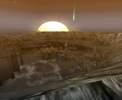 델피너스를 조종해서 신전섬 북동쪽 또는 선원섬 남서쪽에 있는 당그랄 기지로 진입합시다. 이전에 와 봤으니 그다지 헤매지는 않을 겁니다.