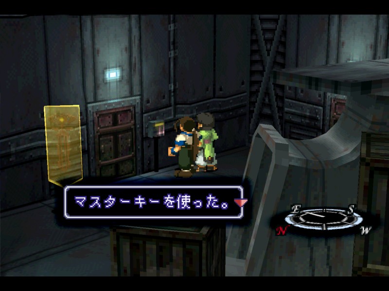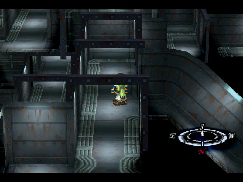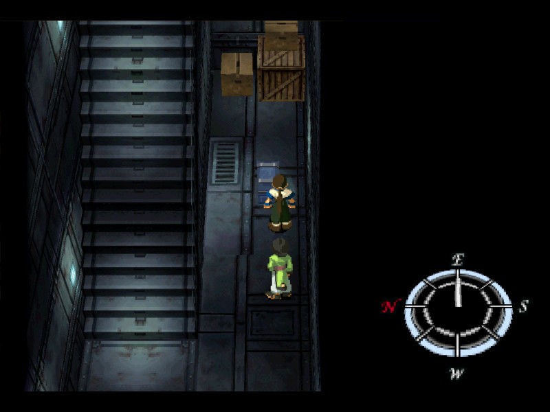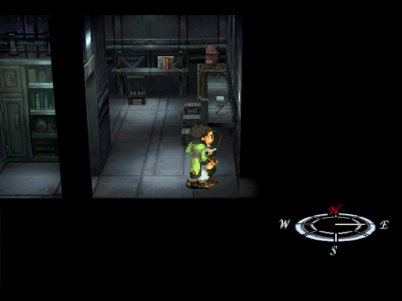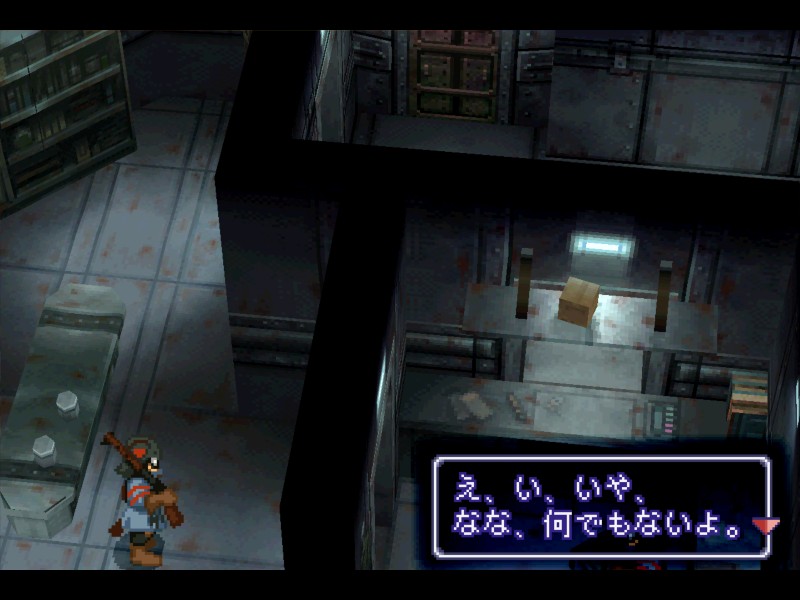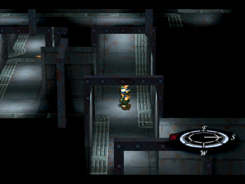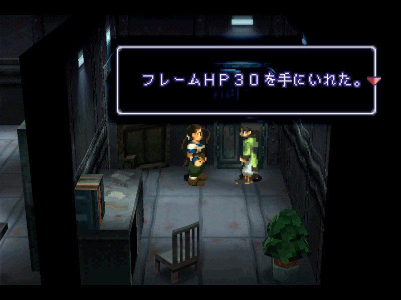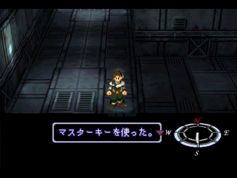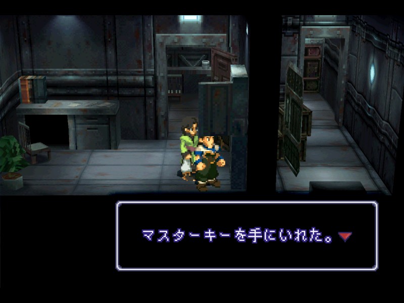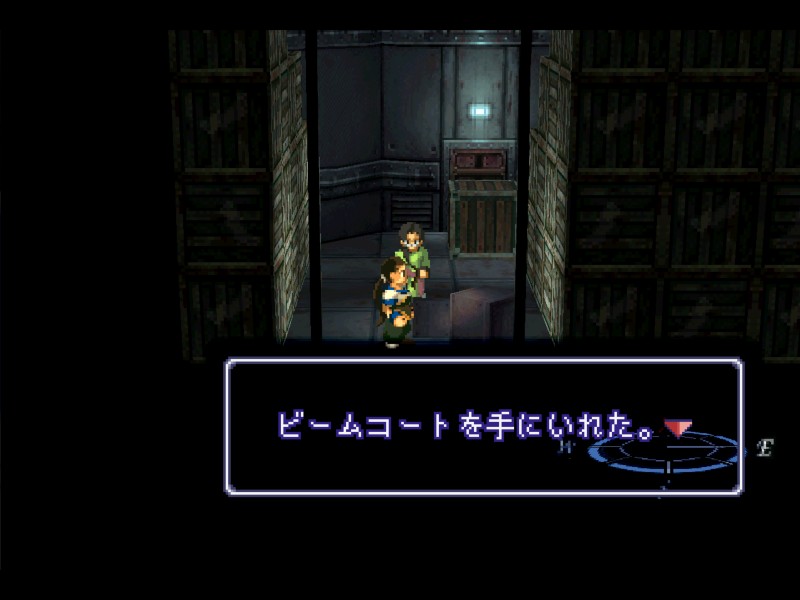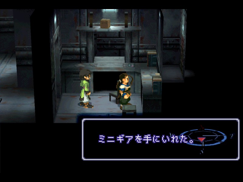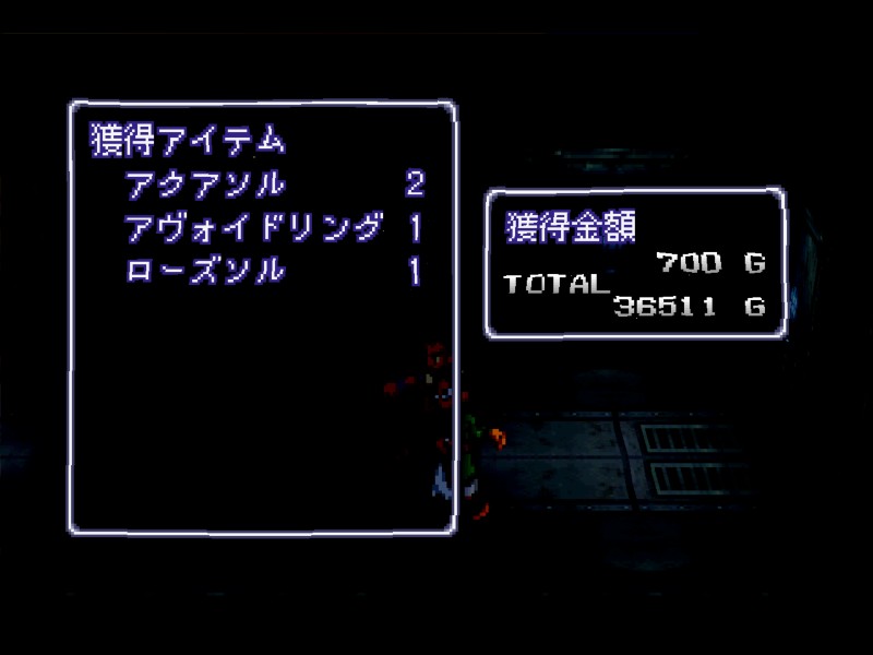 이 방은 아까 경비병이 책상에서 수상한 행동을 하던 곳입니다. 빙 돌아서 책상을 뒤지면 '미니 기어'(Minigear)를 얻을 수 있습니다. 그런데 곧바로 경비병이 들어와 전투를 벌이게 되고 전투후 '어보이드 링'(アヴォイドリング, Evasion Ring)이라는 회피능력을 높여주는 좋은 액세서리를 얻게 됩니다.