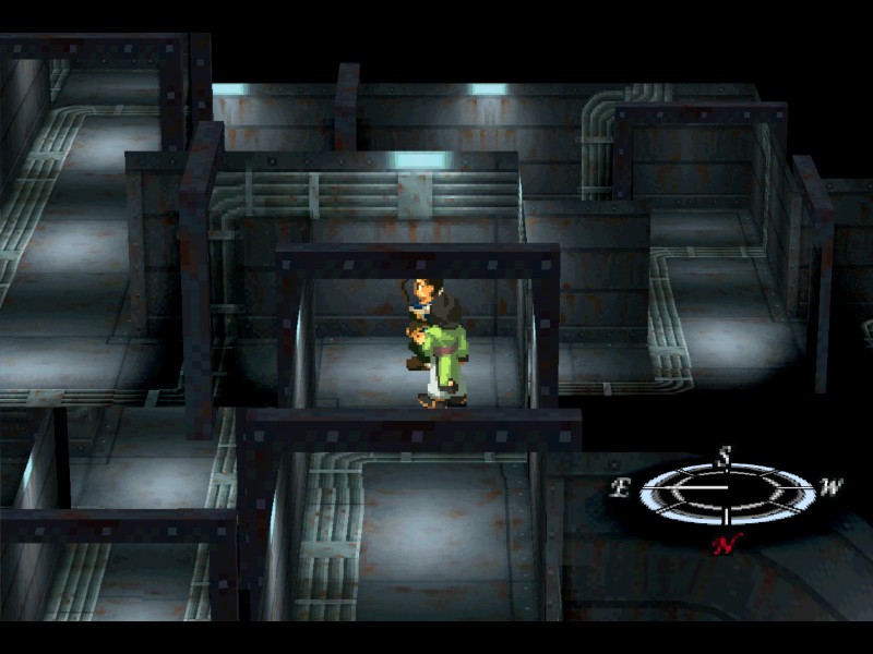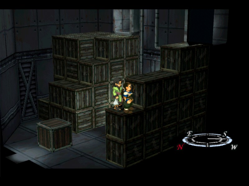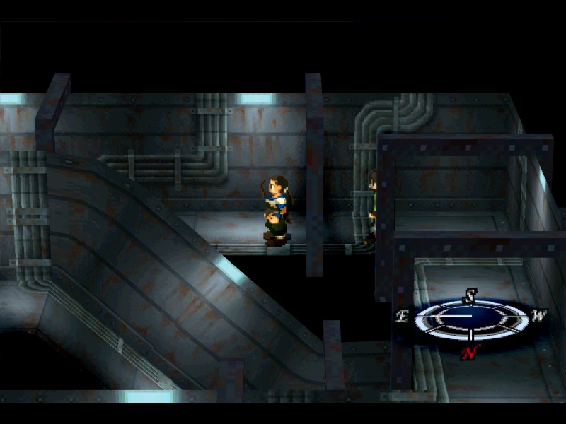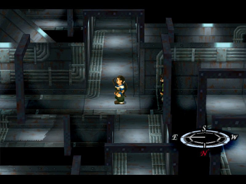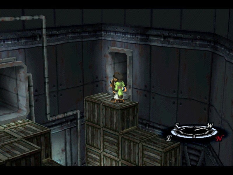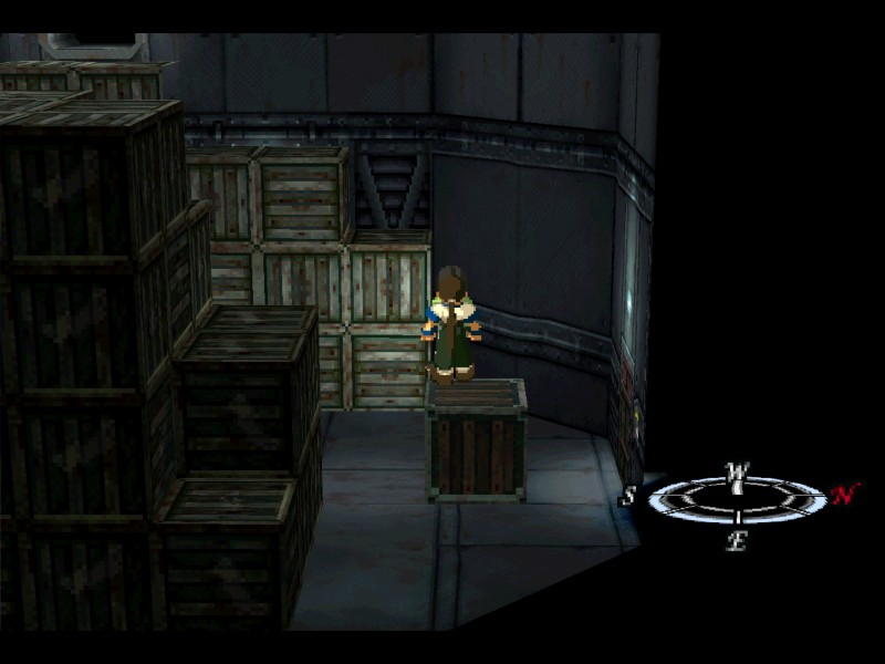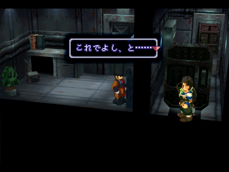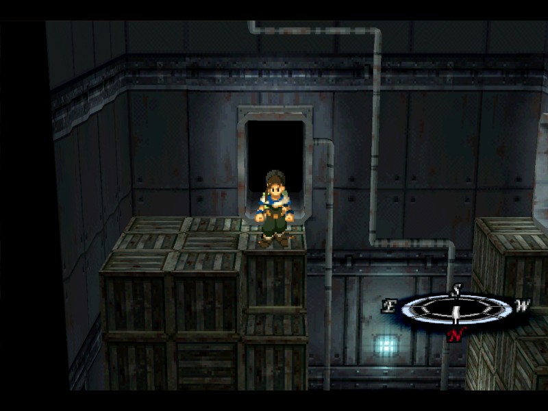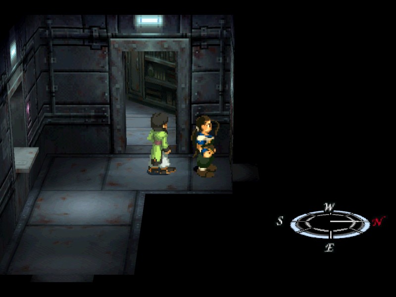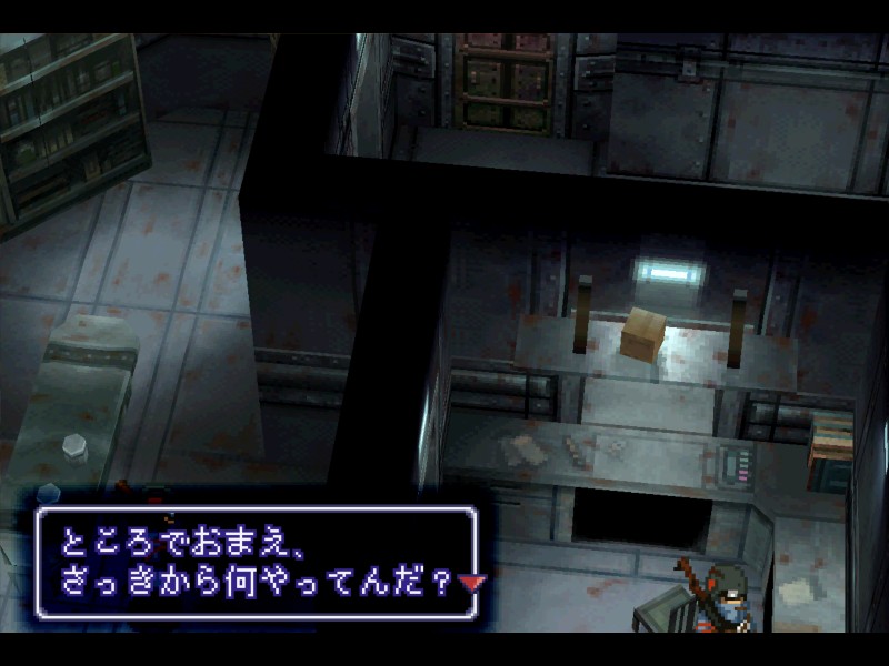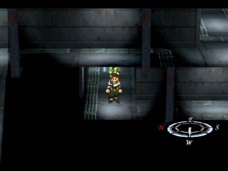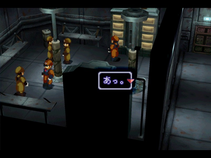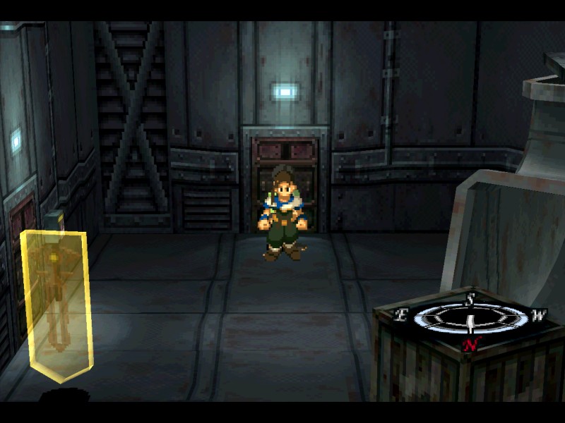 이 방은 아까 경비병이 책상에서 수상한 행동을 하던 곳입니다. 빙 돌아서 책상을 뒤지면 '미니 기어'(Minigear)를 얻을 수 있습니다. 그런데 곧바로 경비병이 들어와 전투를 벌이게 되고 전투후 '어보이드 링'(アヴォイドリング, Evasion Ring)이라는 회피능력을 높여주는 좋은 액세서리를 얻게 됩니다.