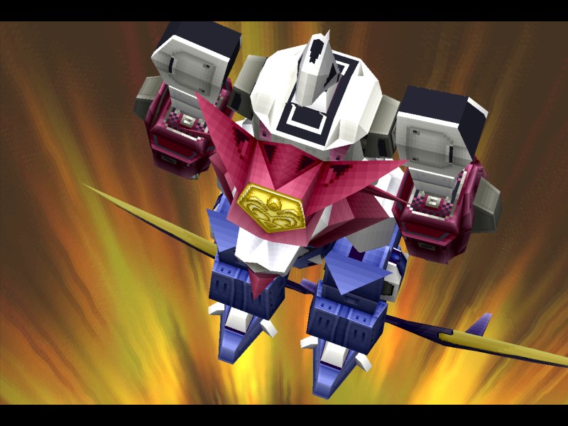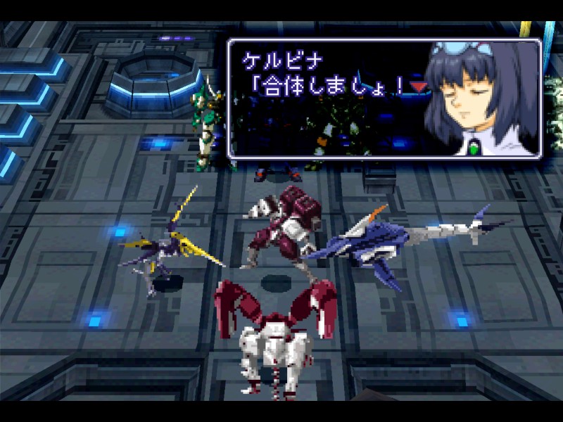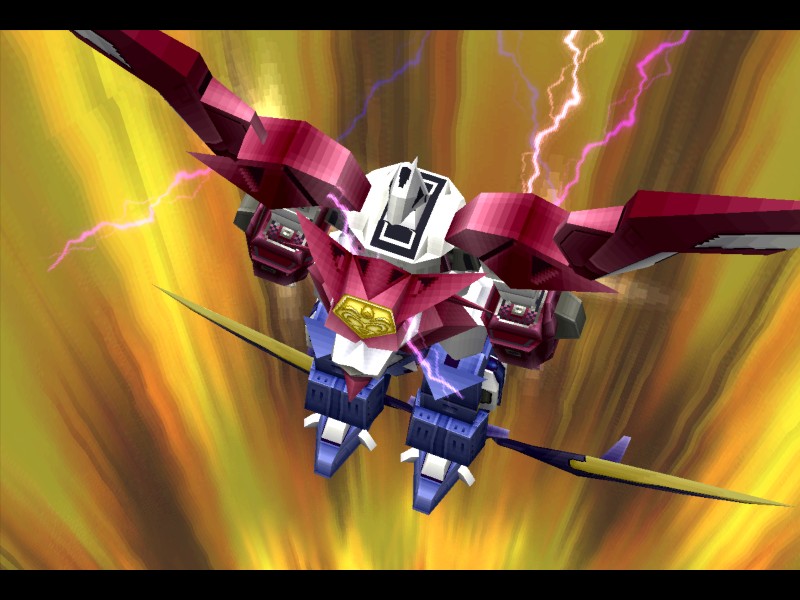 도미니아의 땅속성 인간형 기어 블레이드개쉬는 머리가 되고, 켈비나의 물속성 돌고래형 기어 마린배셔는 다리가 됩니다. 토로네의 바람속성 새 모양의 기어 스카이긴은 날개가 되고, 세라피타의 불속성 사자 모양의 기어 그란가온은 몸통이 됩니다.