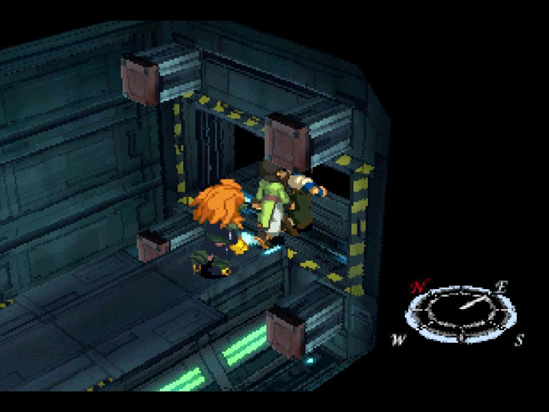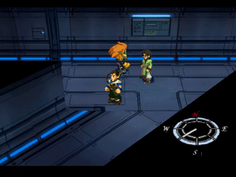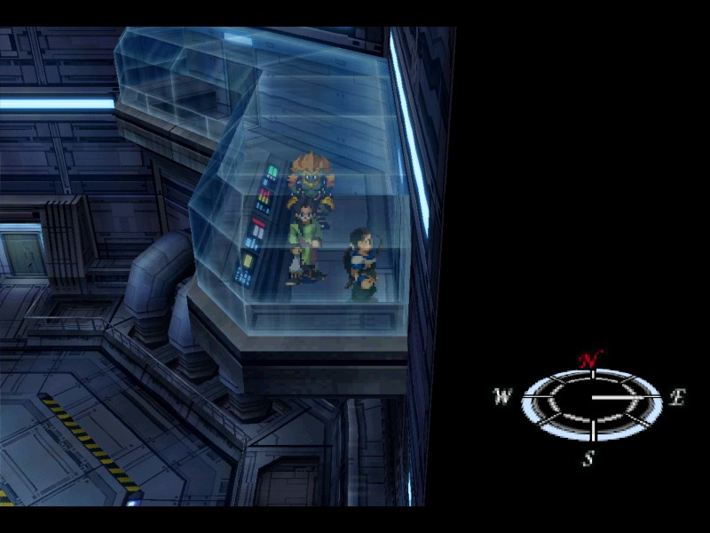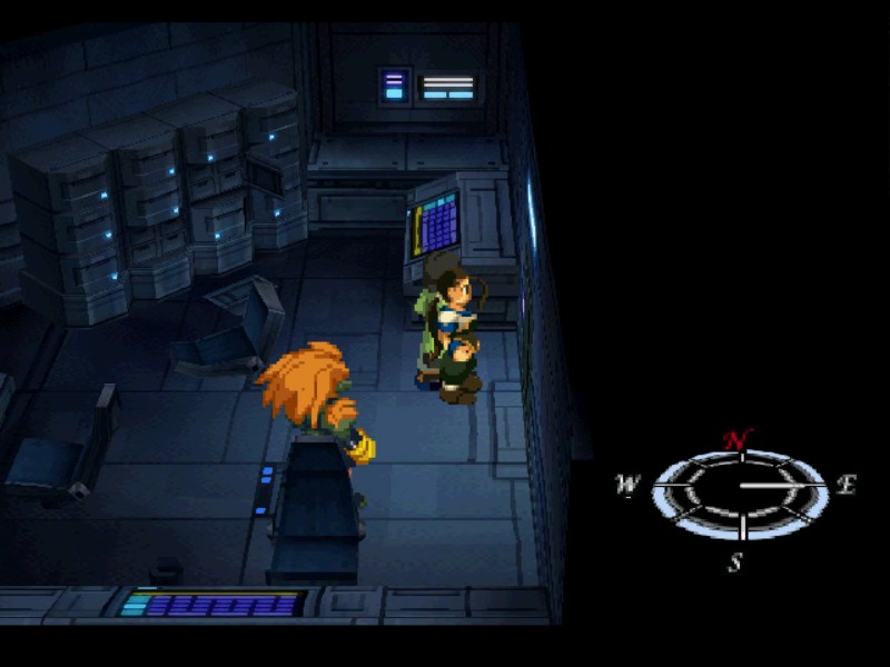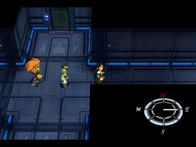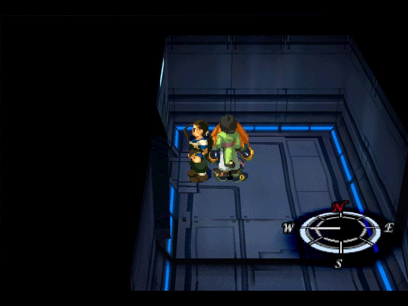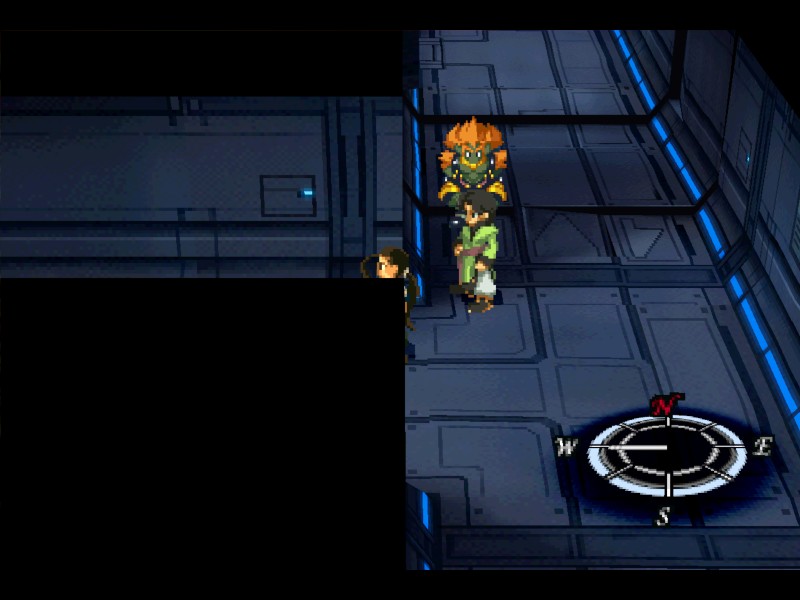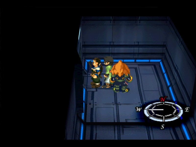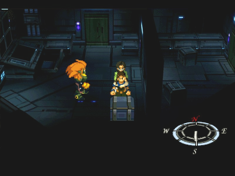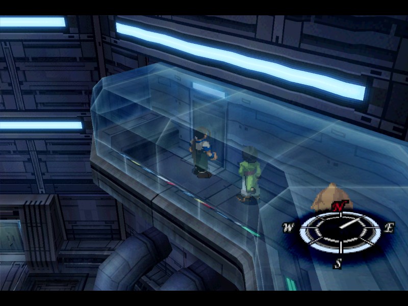 시작지점에서 조금 북쪽으로 가보면 노랑 및 파랑 메모리 큐브와 해결사 죠니(Shopkeep Johnny)가 있습니다. 파랑 메모리 큐브에서 일행을 정할 때 스토리상으로는 에리와 빌리를 데려가는게 좋지만, 어쨌든 진행중에 자동으로 주요 인물이 난입을 하니 꼭 공략대로 할 필요는 없습니다. 죠니에게서 필요한 아이템과 무기 등을 구입하고, 인간 및 기어의 강화와 액세서리 장착을 충실히 해야 합니다.