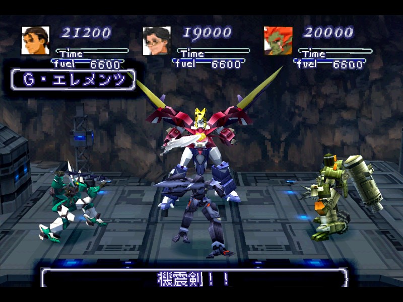 갓 엘레멘츠는 싸움을 시작하기 전에 기진검(機震劍, Kishin Sword)을 뽑아드는데 승리하면 이 검을 얻을 수 있고, 시탄의 기어에 장비할 수 있습니다. 페이의 벨톨2는 특수장치 - 시스템 이드로 하이퍼 모드 공격을 하고, 나머지는 각자의 필살기나 에텔 공격, 특수장치 공격을 퍼부으면 됩니다.