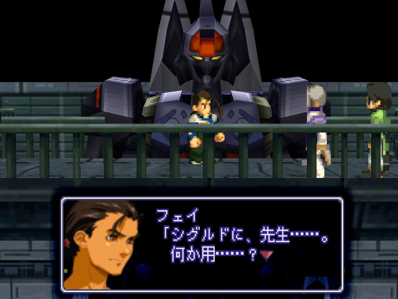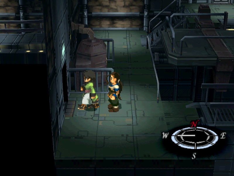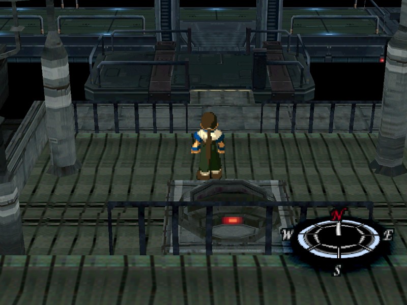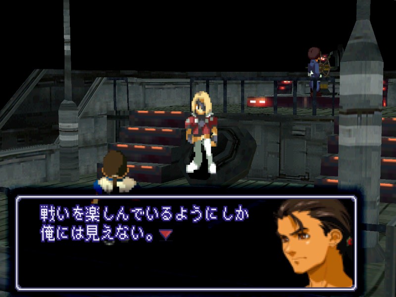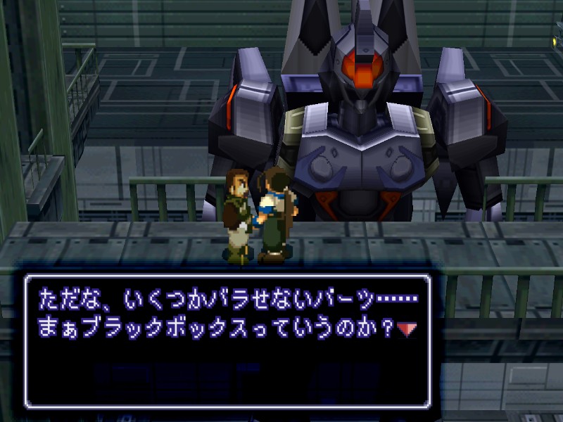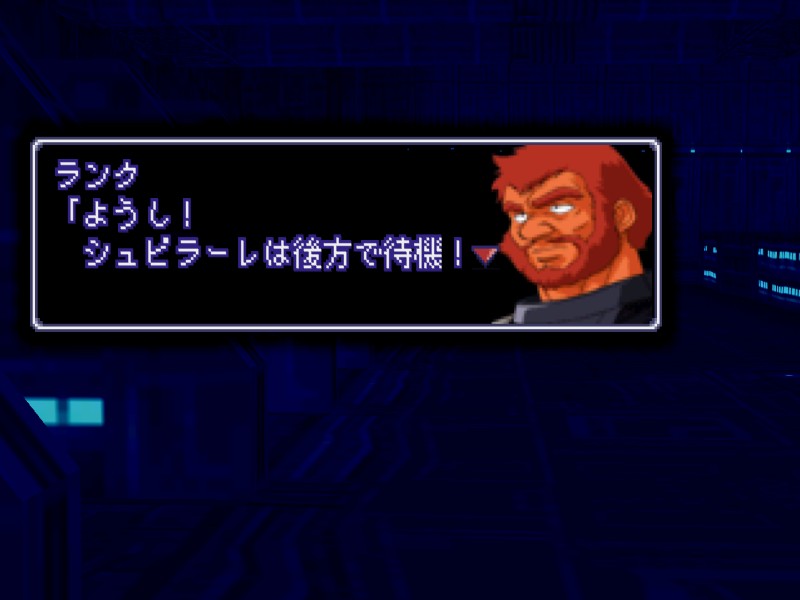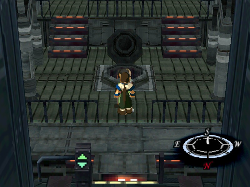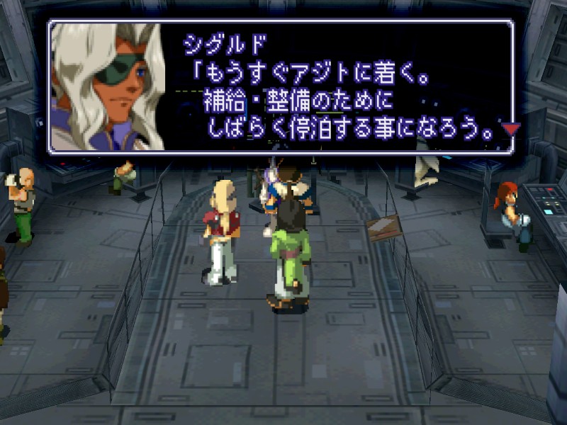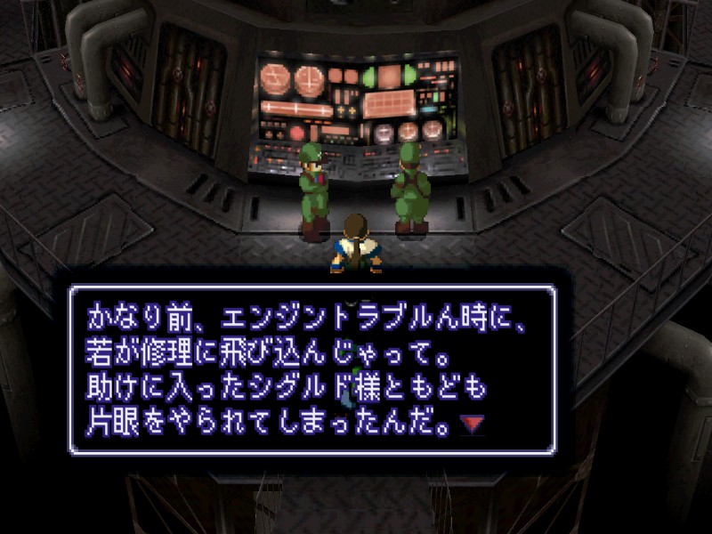 해적 아지트는 비상이 걸려서 다들 우왕좌왕하고 있는데, 방송에서 게브라 특수부대의 기어 5기와 미확인 대형기어 1기가 다가오니 다들 격납고로 오라고 합니다. 페이를 움직여 방을 나와 바로 남쪽 근처의 승강기를 타고 내려갑니다.