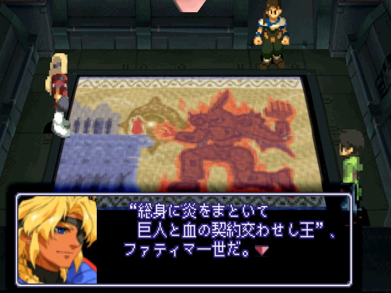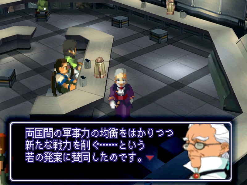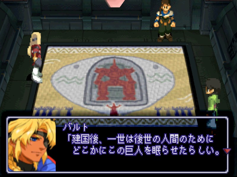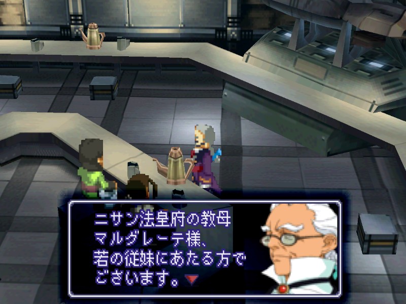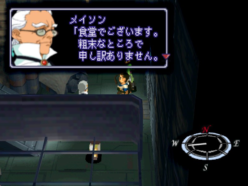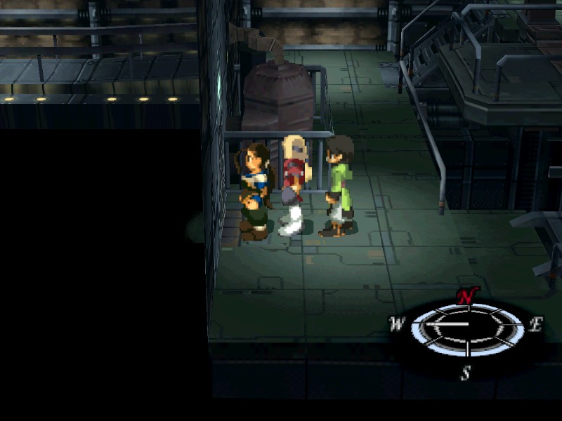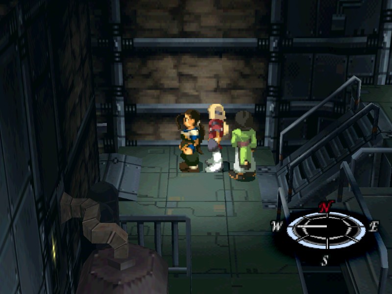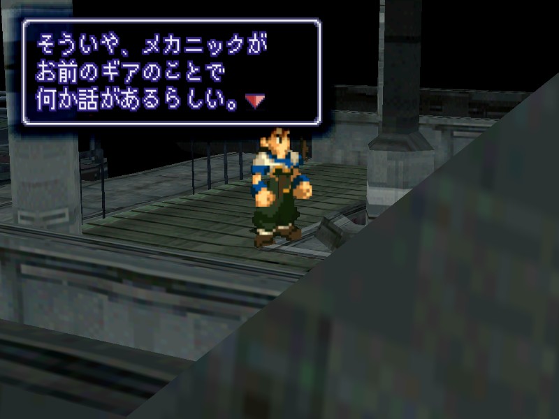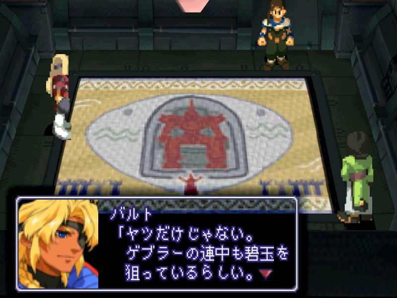해적 아지트는 비상이 걸려서 다들 우왕좌왕하고 있는데, 방송에서 게브라 특수부대의 기어 5기와 미확인 대형기어 1기가 다가오니 다들 격납고로 오라고 합니다. 페이를 움직여 방을 나와 바로 남쪽 근처의 승강기를 타고 내려갑니다.