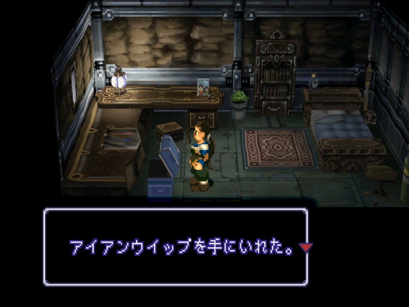 식당 밖으로 나와 동쪽으로 계속 가다가 남쪽에 있는 문을 조사해 보면 바트의 방입니다. 맘대로 들어오면 죽는다고 써있지만 무시하고 위쪽 선택지를 고르고 들어가면 됩니다. 바트의 방에서는 별거 없고, 보물상자에서 바트의 무기인 아이언윕(Iron Whip)을 얻을 수 있습니다.