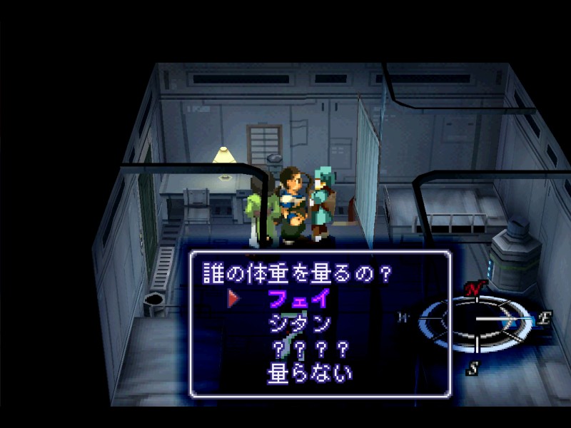 빈 방을 나와 조금 북쪽으로 가면 동쪽 벽과 서쪽 벽에 문이 있는데, 서쪽에 있는 문을 열고 들어가면 승조원들의 휴게실과 이어집니다. 동쪽 벽의 문을 열고 들어가면 의무실이 있으며 그 안의 간호원은 체중을 알려줍니다. 참고로 들리는 얘기로는 원래 처음 게임 개발시에 체중과 관련된 이벤트를 몇가지 집어넣으려고 했는데 개발과정에서 전부 잘려나갔다고 합니다. 그래서 이 게임을 하다보면 체중과 관련된 것이 간혹 나오는데(체중 관련 아이템이나 저울 등) 사실 아무 의미없습니다.
