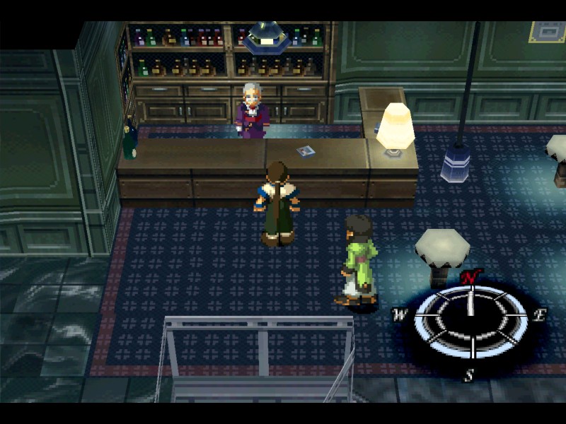 식당의 계단을 내려 오자마자 남쪽을 보면 아이템/액세서리/기어샵이 있으니 필요하면 이용하세요. 일단 동쪽의 문을 열고 식당을 나가겠습니다.