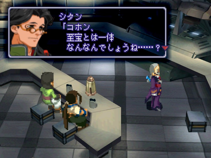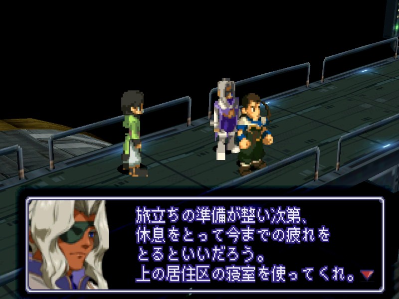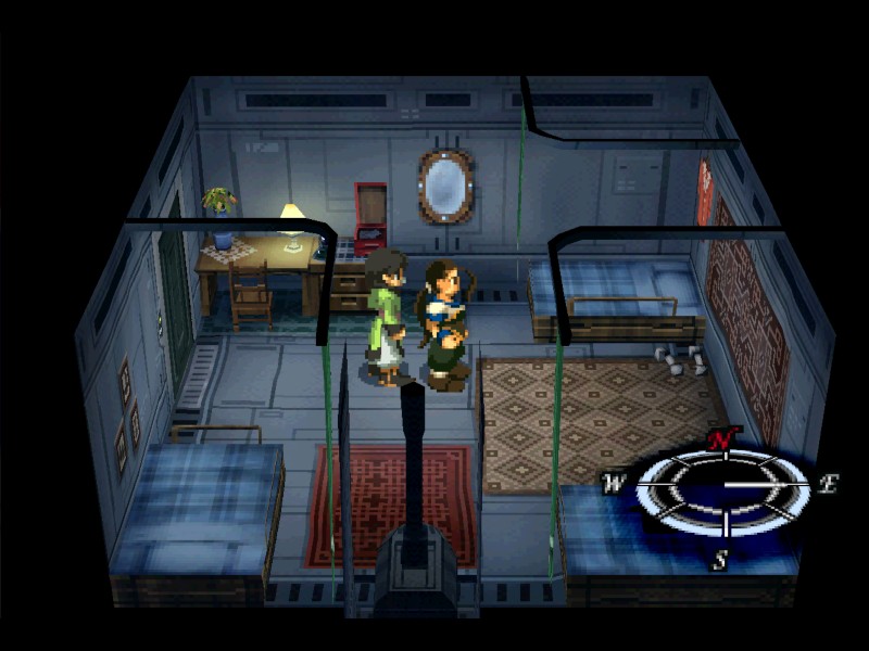 통로의 바로 서쪽에 있는 문을 열고 들어가면 승조원들이 휴식을 취할수 있는 방이 있습니다. 이 방의 남서쪽에 있는 사람에게 말을 걸면 휴식을 취할 수 있으니 앞으로도 HP 회복에 많은 도움이 됩니다.