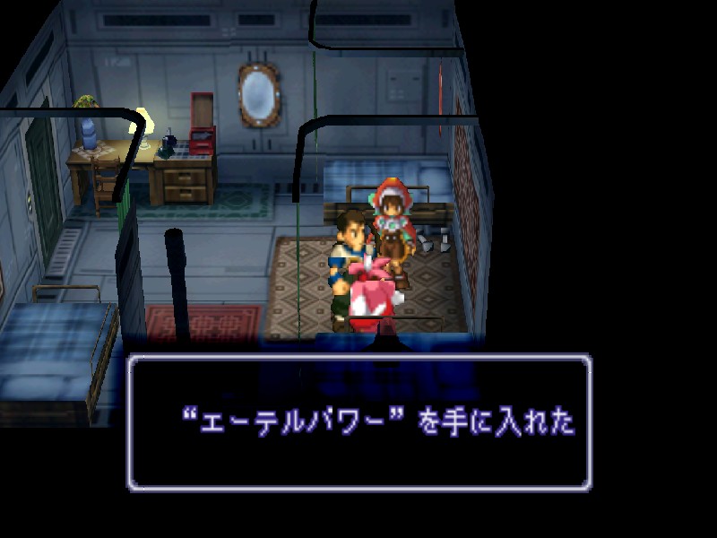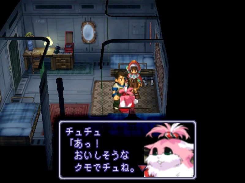 츄츄에게도 말을 걸어 볼 수 있는데 여기서 만일 예전에 라한 마을의 산길을 올라가다가 얻어둔 거미가 있으면 츄츄가 맛있게 먹어 버립니다. 대신 답례로 기어용 액세서리 에텔파워(내성효과 2배)를 줍니다. 일단 츄츄에게 말을 걸면 츄츄는 거미를 무조건 먹어치우니 혹시라도 거미를 게임 끝까지 가져가려면 주의하세요. 사실 에텔파워는 나중에도 몇 개 얻을 수 있습니다.