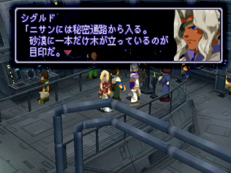 잠사함 유그드라실을 조종해 대륙 북서쪽으로 가 보면 나무 한그루가 있는 곳이 있고, 그 근처에서 O버튼을 누르면 니산으로 가는 입구로 진행됩니다.