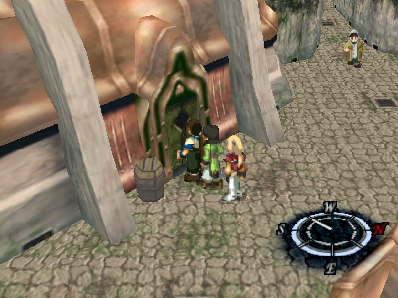 북서쪽으로 걷다가 보이는 이 건물에 들어가 보면 도구점도 있고, 메모리 큐브도 있으며, 사진속의 사람은 기어샵의 역할을 합니다.