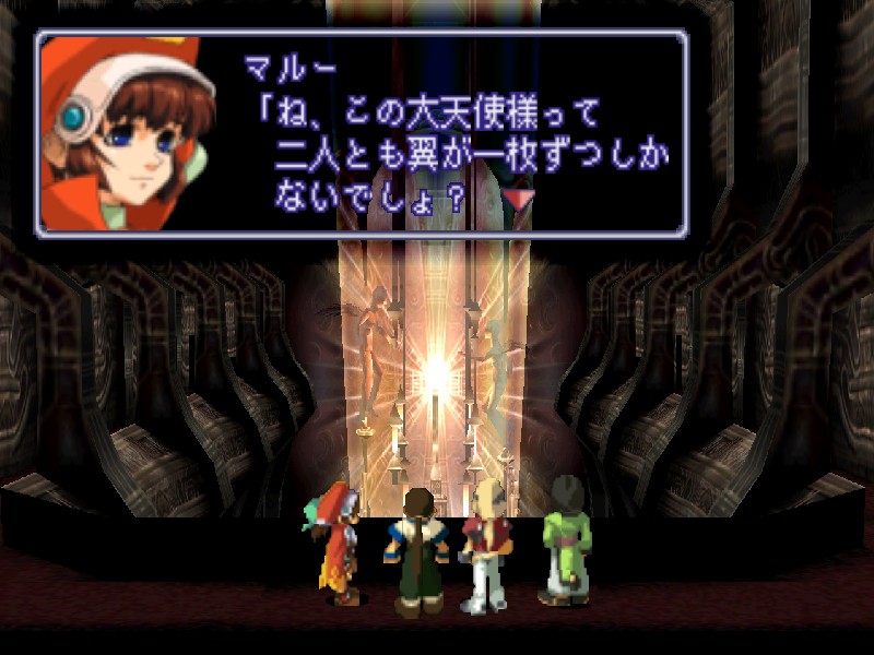 마르는 저기 보이는 두 개의 천사상을 잘 보면 각각 날개가 하나밖에 없는데 그 이유를 아느냐고 묻습니다. 그에 대한 해답은 날아다닐때 항상 함께 하기 위해서라고 합니다. 그래서 그런지 시탄의 소감을 들어보면 왼쪽 천사상은 남성, 오른쪽 천사상은 여성같다고 합니다.