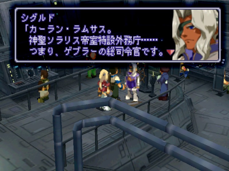 이제 문을 가로막던 츄츄가 없으니 다시 함교로 가서 시글드와 대화하면 아까 싸웠던 그 남자에 대해서 얘기해 줍니다. 그의 이름은 카란 람사스(Kahran Ramsus), 게브라의 총사령관을 맡고 있는 꽤 고위직 인물입니다.