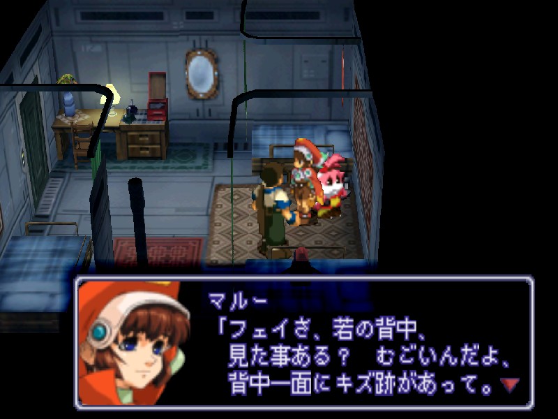 바트가 먼저 나가고, 페이가 마르에게 말을 걸어 볼 수 있습니다. 그러면 예전에 바트와 마르가 샤칸에게 잡혔을때 바트가 마르 대신 얻어맞아 등짝에 큰 상처가 났다고 합니다.